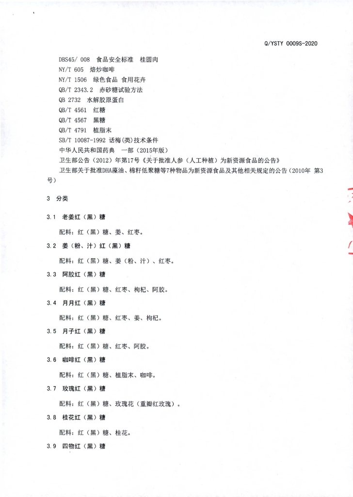 Q/YSTY 0009S-2020 调制红(黑)糖