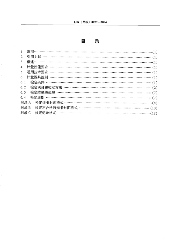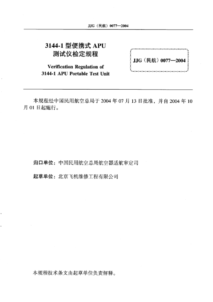 JJG(民航)0077-2004 3144-1型便携式APU测试仪检定规程