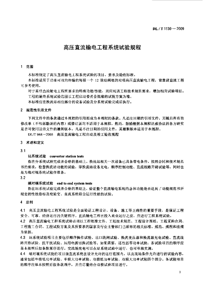 DL/T 1130-2009 高压直流输电工程系统试验规程
