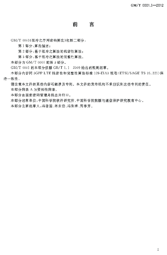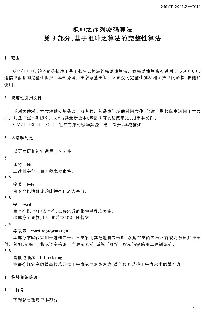 GM/T 0001.3-2012 祖冲之序列密码算法 第3部分:基于祖冲之算法的完整性算法