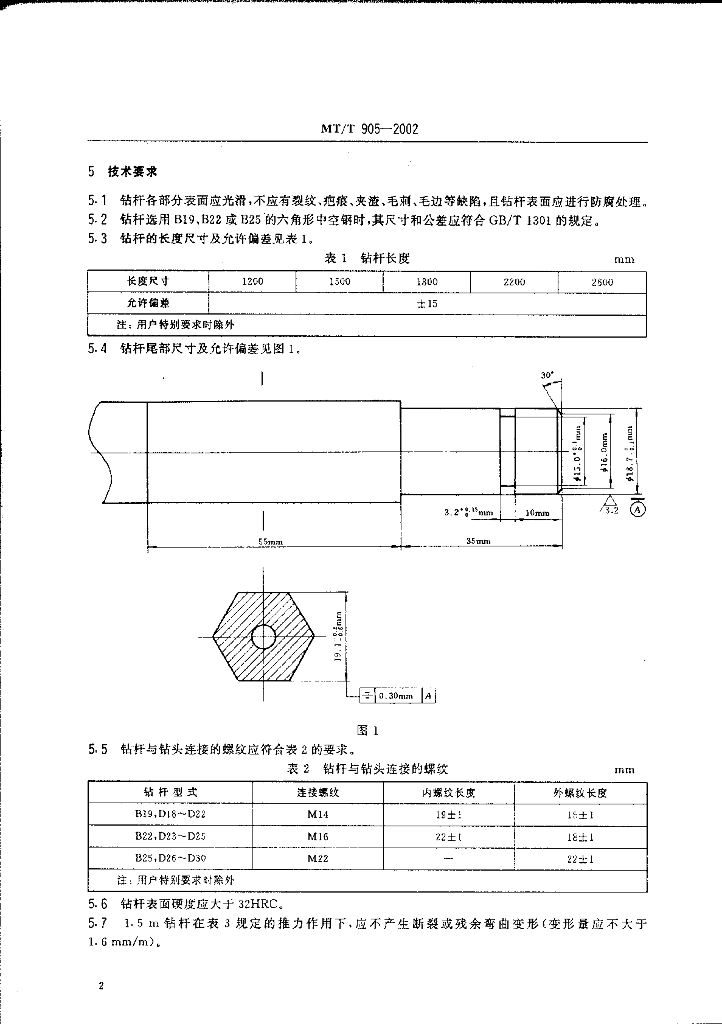 MT/T 905-2002 煤矿锚杆钻机用回转钻杆