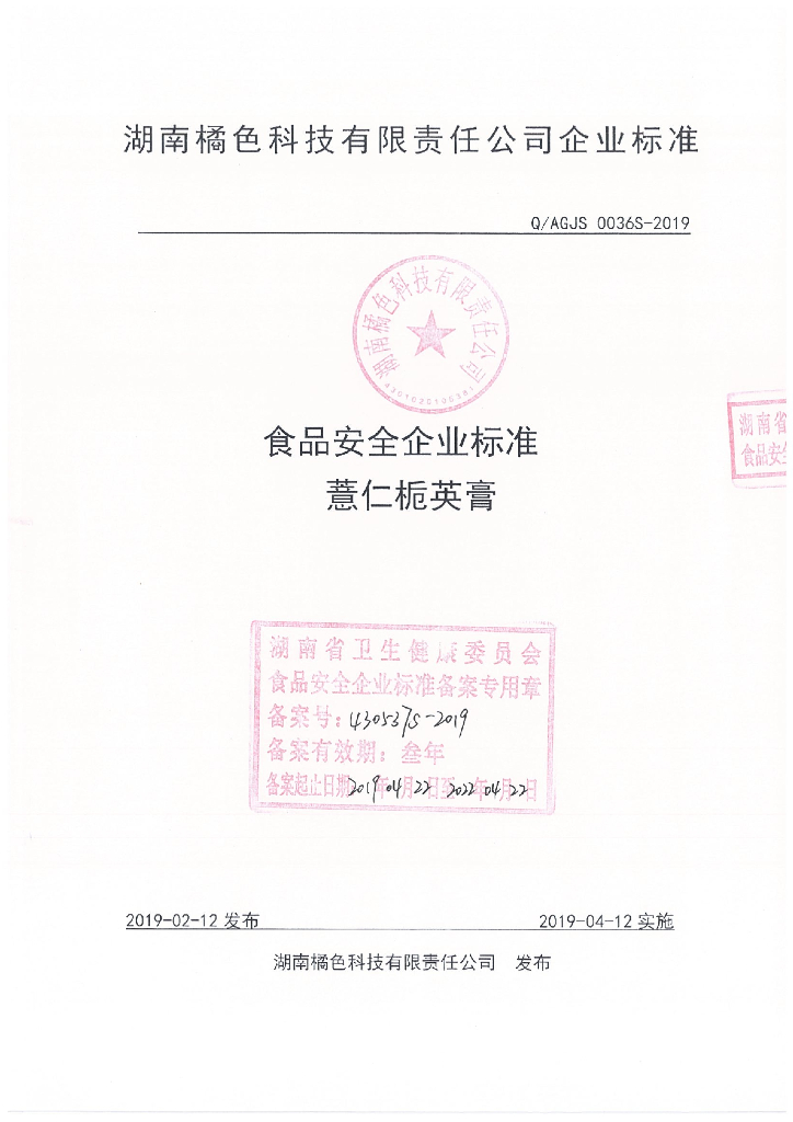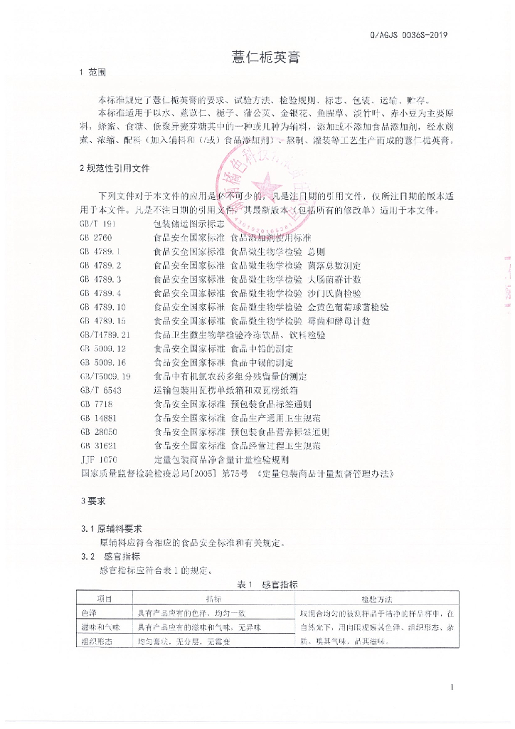 Q/AGJS 0036S-2019 薏仁栀英膏