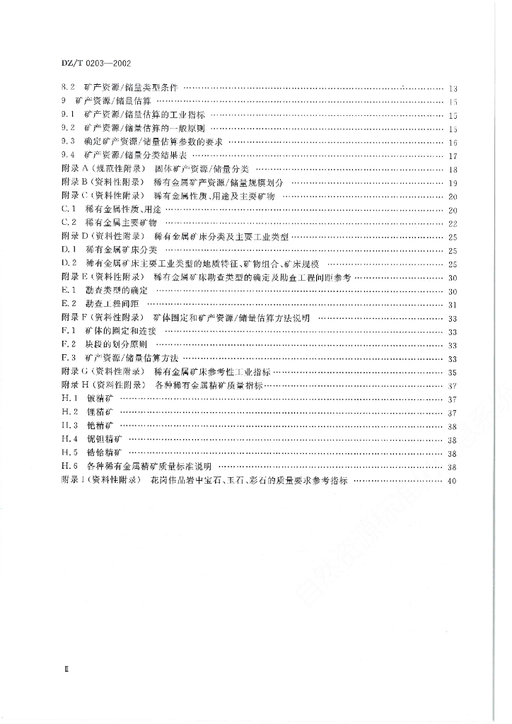 DZ/T 0203-2002 稀有金属矿产地质勘查规范