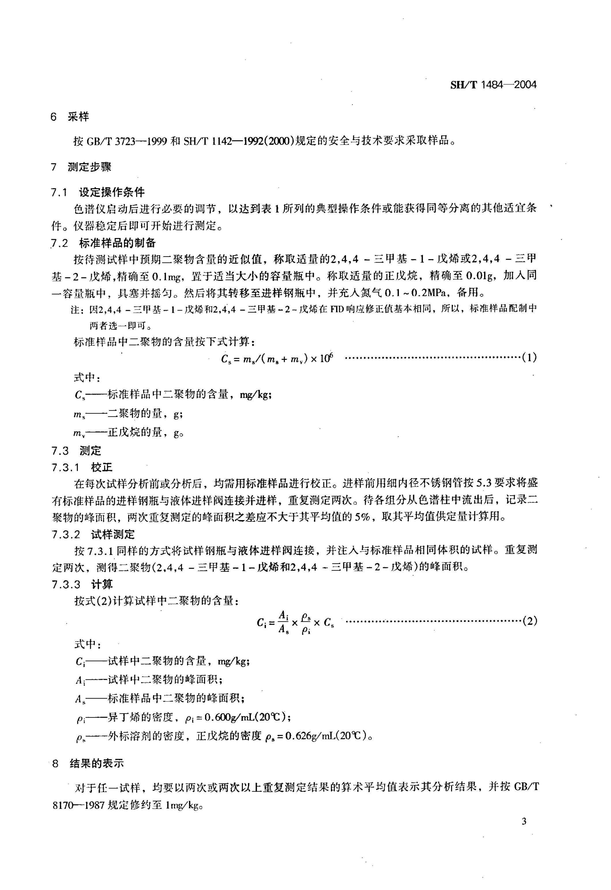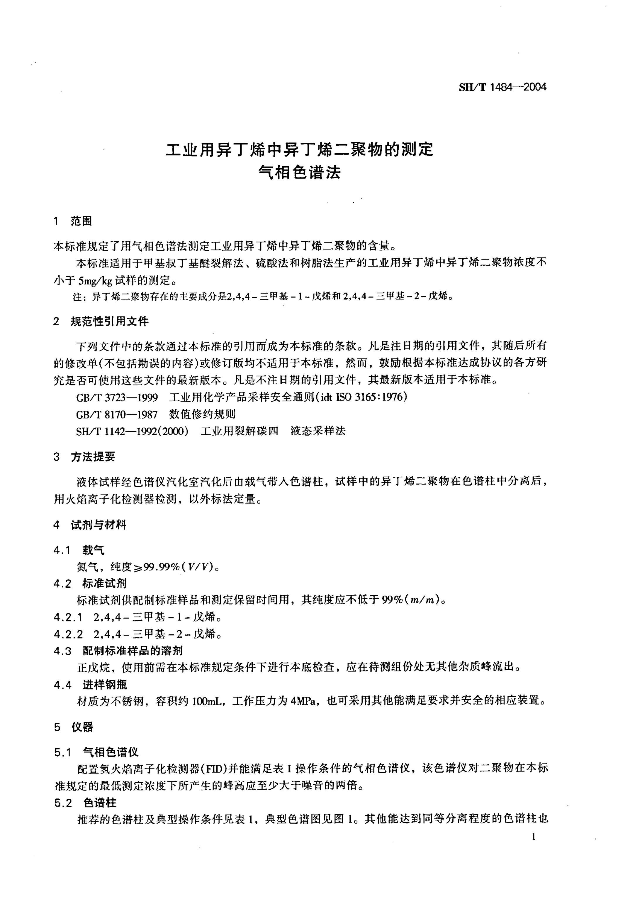 SH/T 1484-1992 工业用异丁烯中异丁烯二聚物的测定-气相色谱法