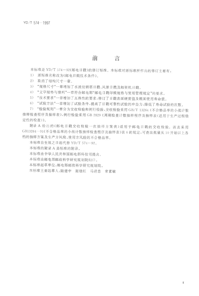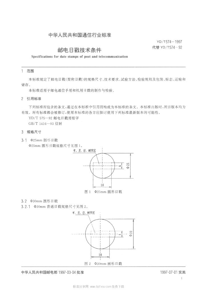 YD/T 574-1997 邮电日戳技术条件