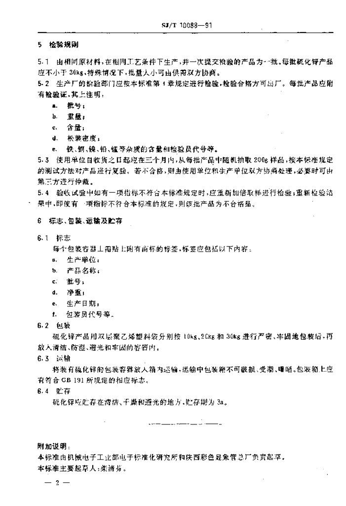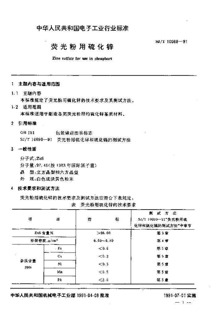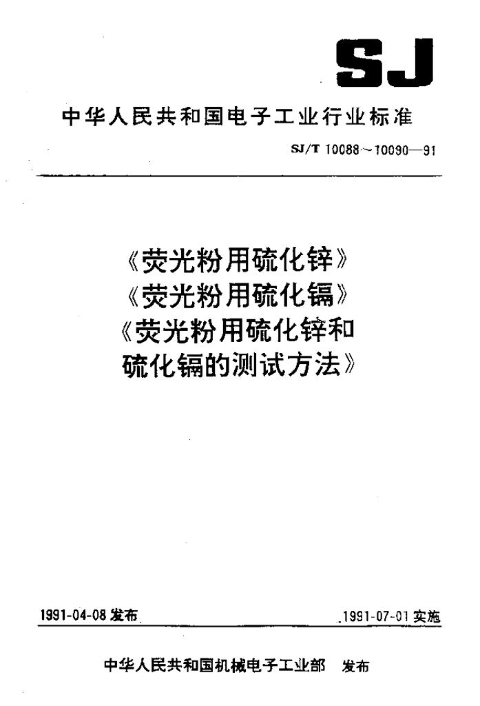 SJ/T 10088-1991 荧光粉用硫化锌