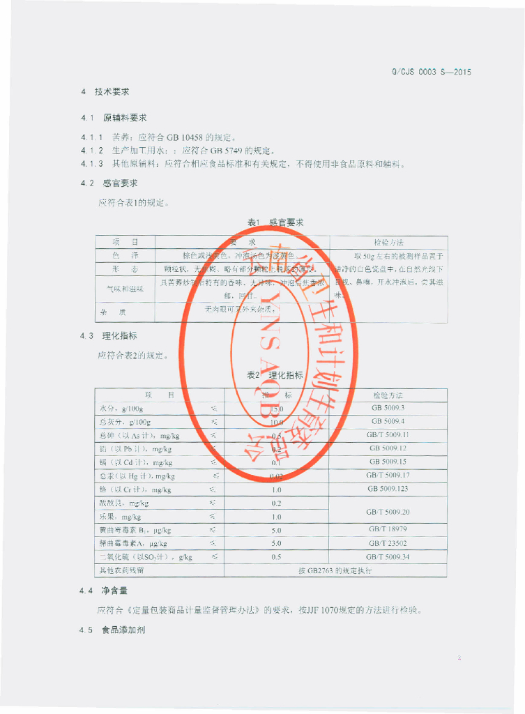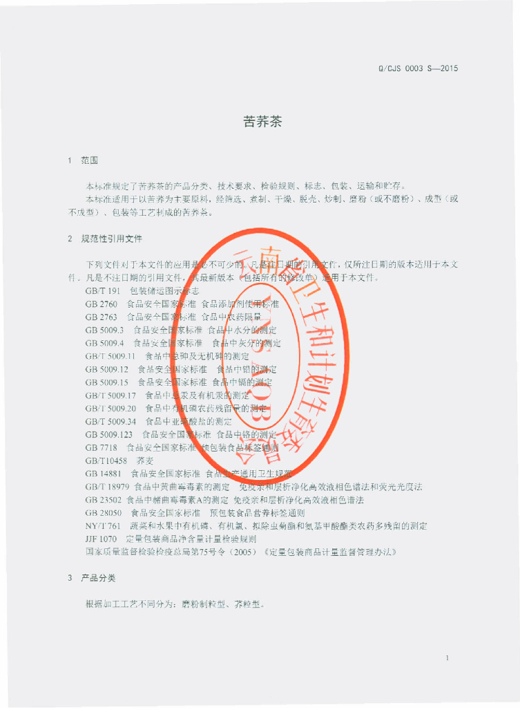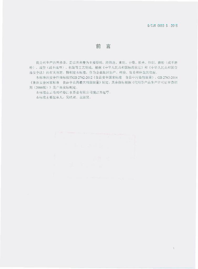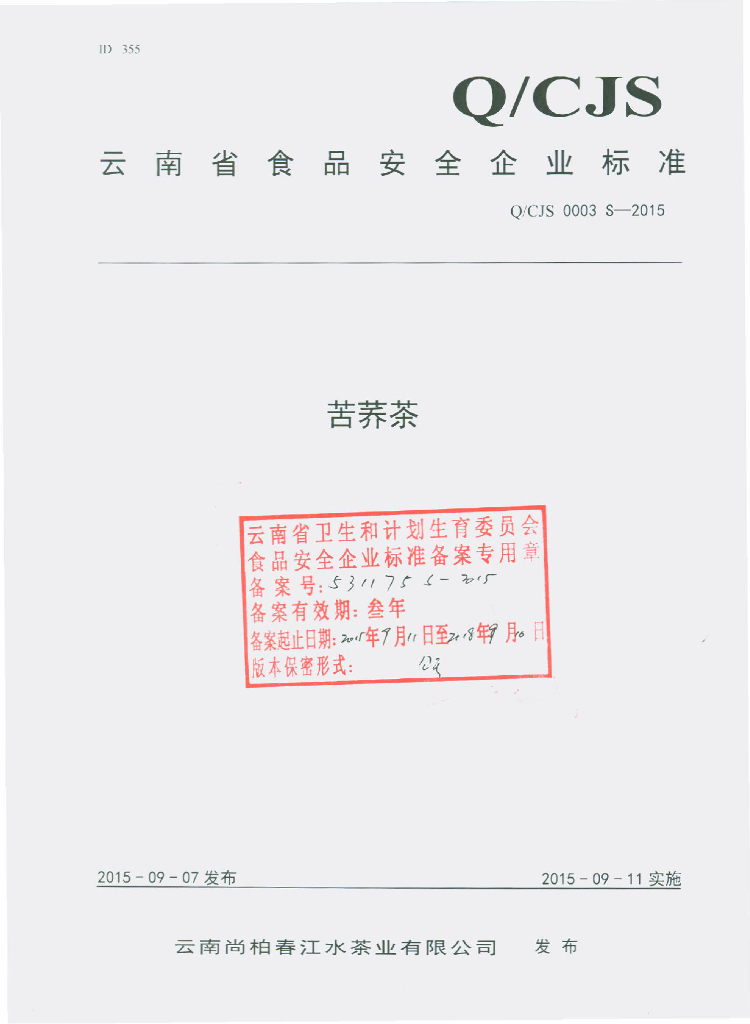 Q/CJS 0003S-2015 云南尚柏春江水茶业有限公司 苦荞茶