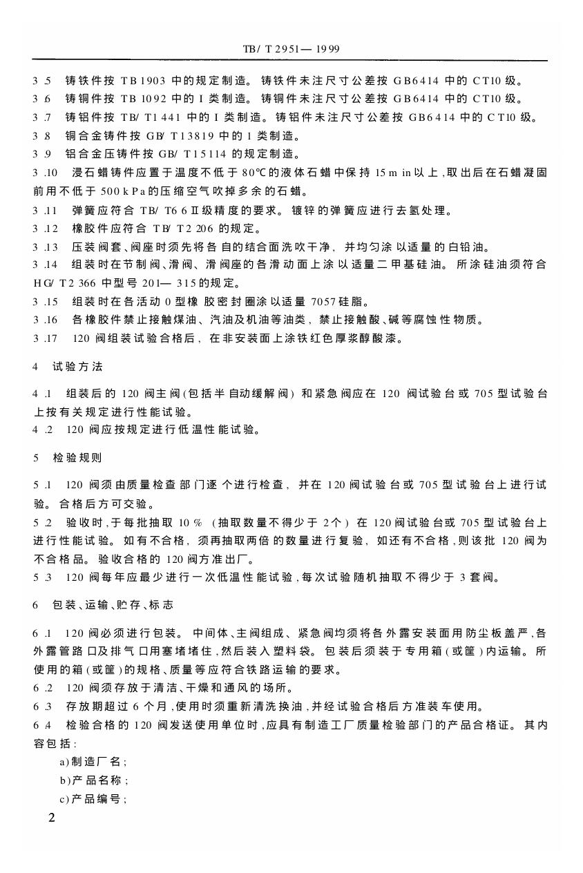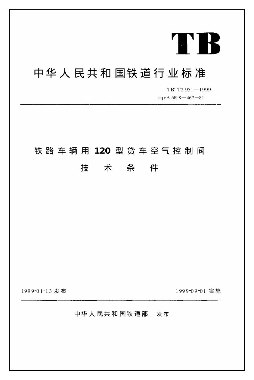TB/T 2951-1999 铁路车辆用120型货车空气控制阀技术条件