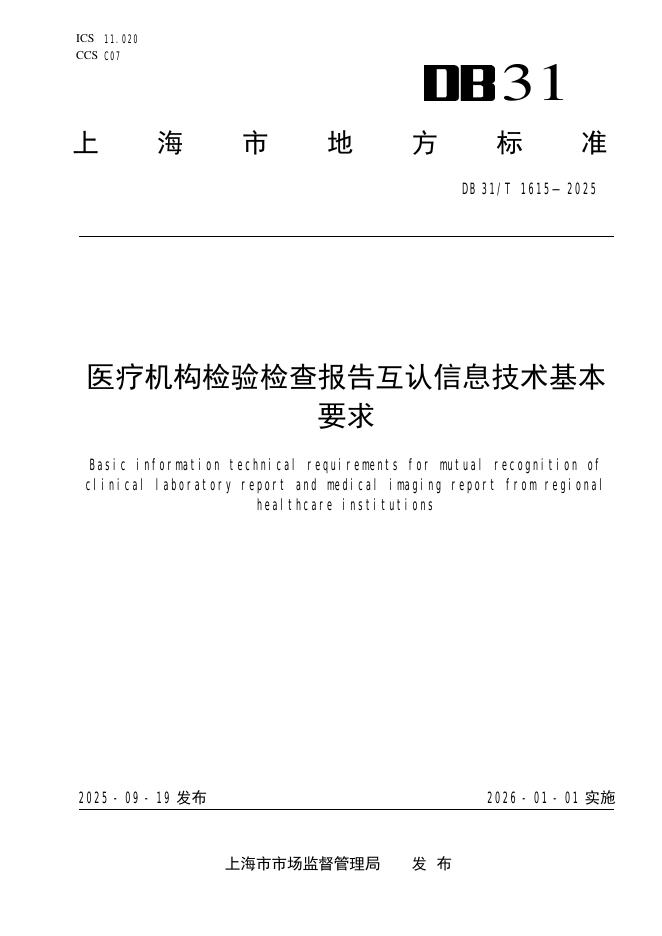 DB31/T 1615-2025 医疗机构检验检查报告互认信息技术基本要求