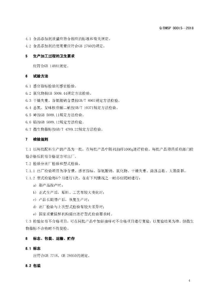 Q/DWSP 0001S-2018 鸡味调味料