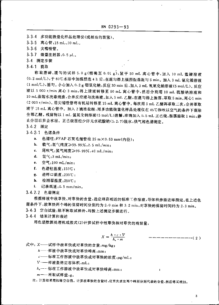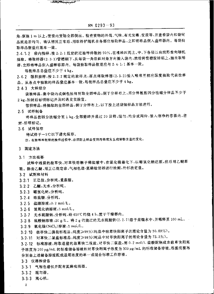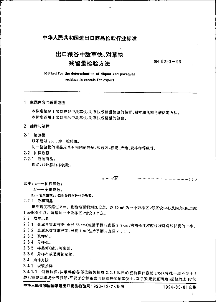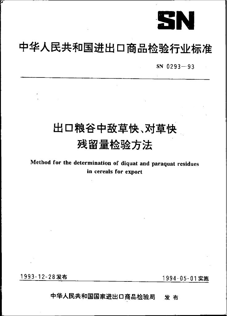 SN 0293-1993 出口粮谷中敌草快、对草快残留量检验方法