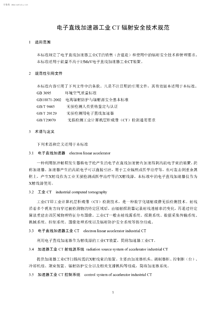 HJ 785-2016 电子直线加速器工业CT辐射安全技术规范