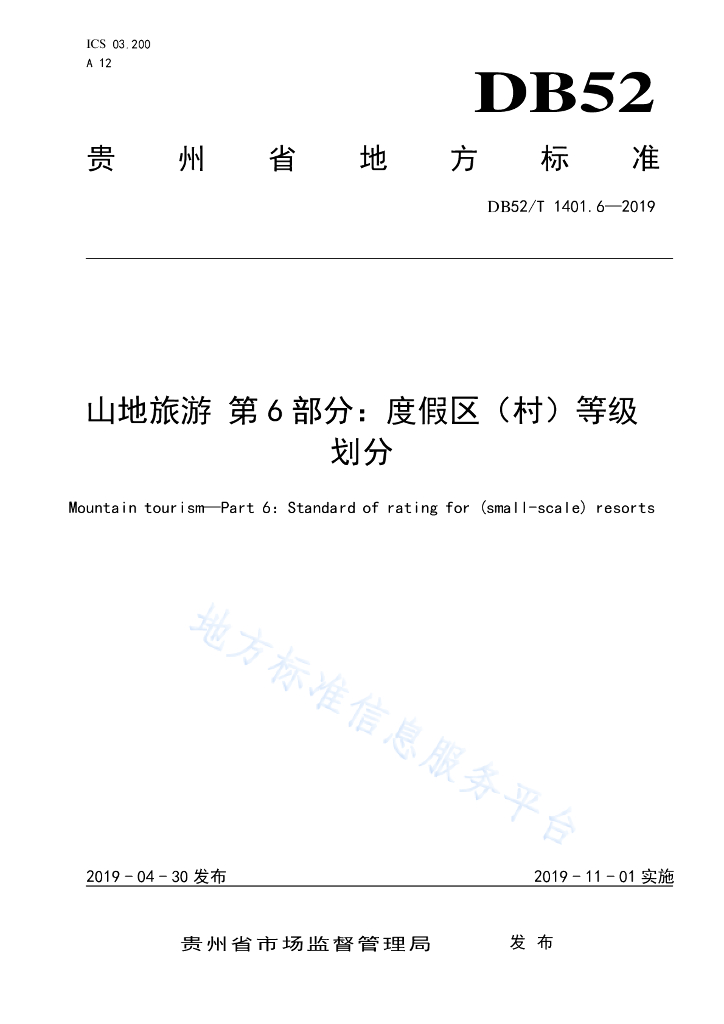 DB52/T 1401.6-2019 山地旅游 第6部分:度假区(村)等级划分