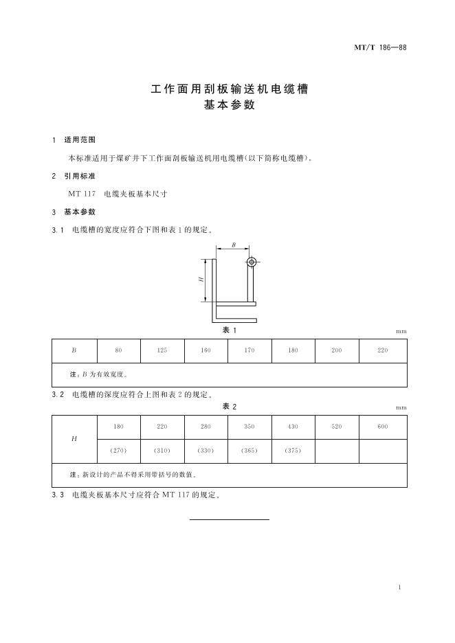 MT/T 186-1988 工作面用刮板输送机电缆槽基本参数