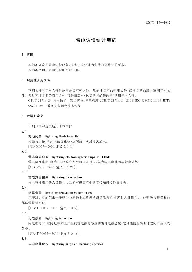 QX/T 191-2013 雷电灾情统计规范