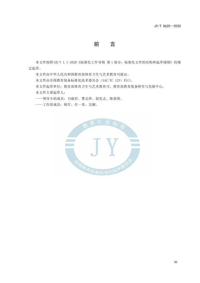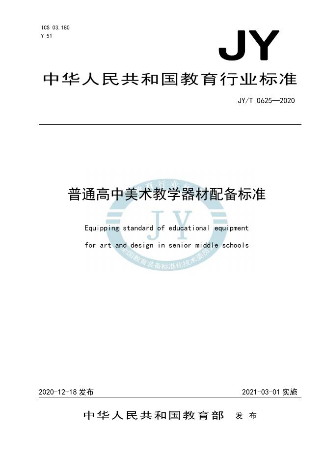 JY/T 0625-2020 普通高中美术教学器材配备标准