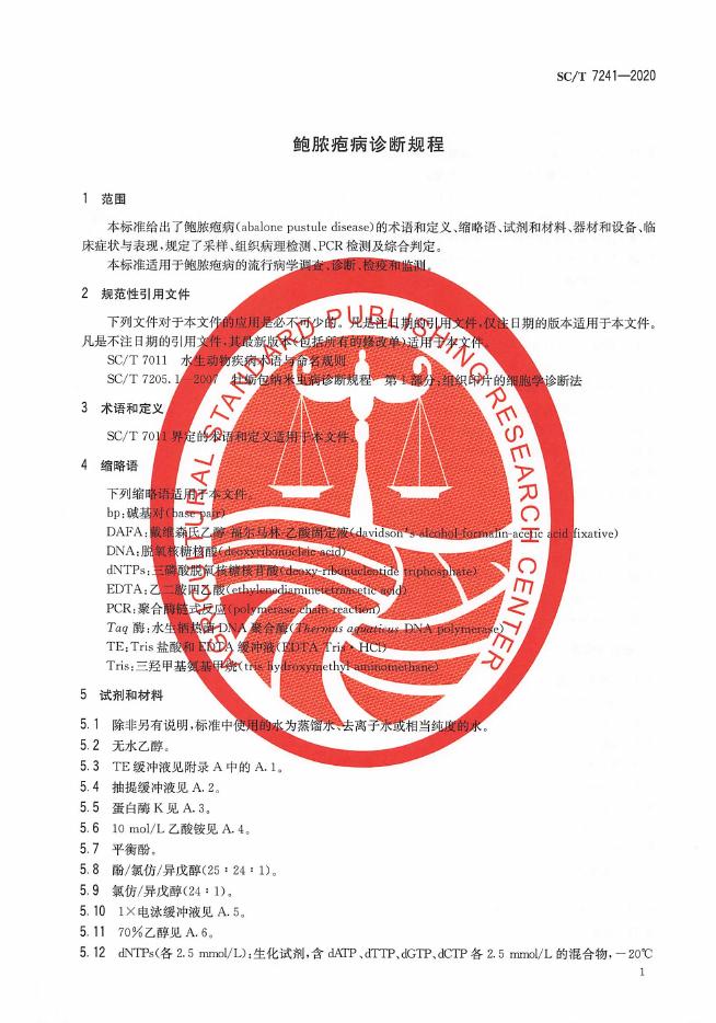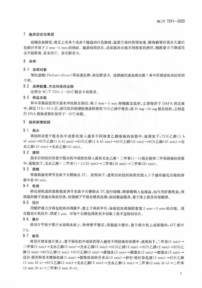 SC/T 7241-2020 鲍脓疱病诊断规程