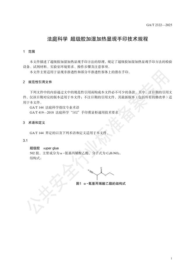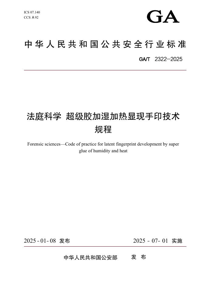 GA/T 2322-2025 法庭科学 超级胶加湿加热显现手印技术规程(目录版)