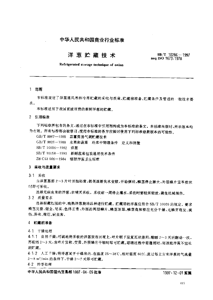 SB/T 10286-1997 洋葱贮藏技术