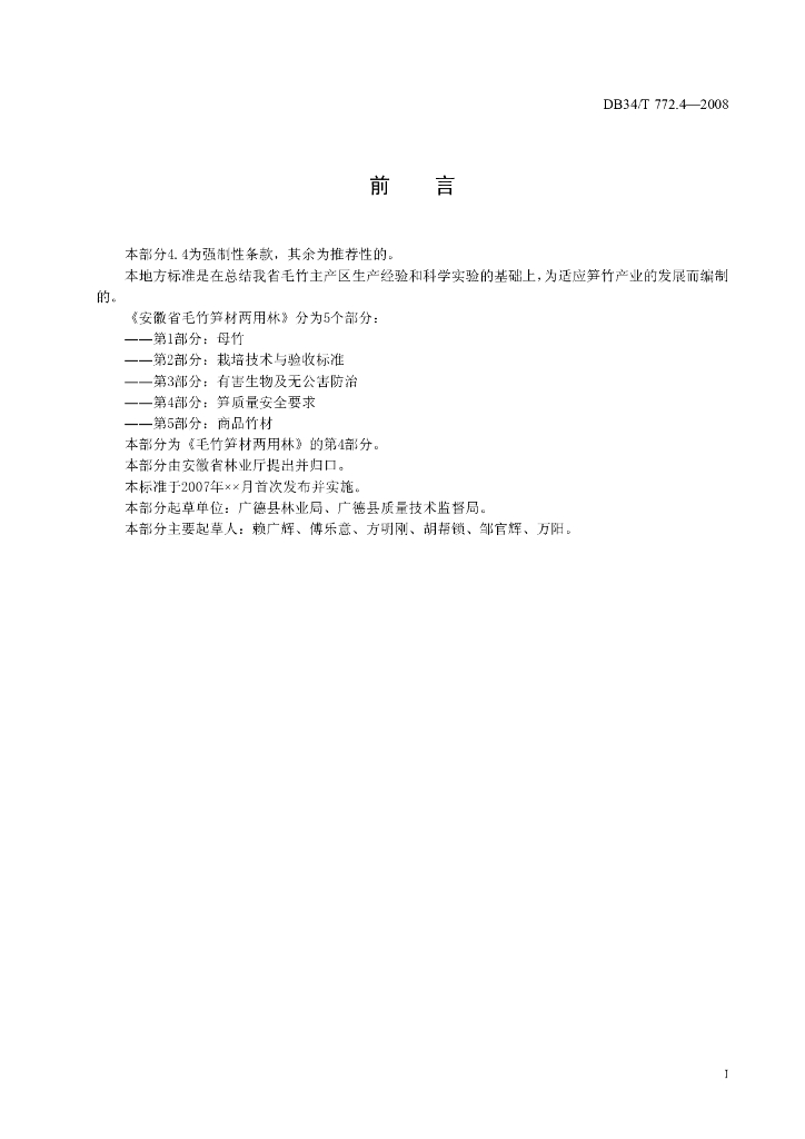 DB34/T 772.4-2008 安徽省毛竹笋材两用林 第4部分:笋质量安全要求