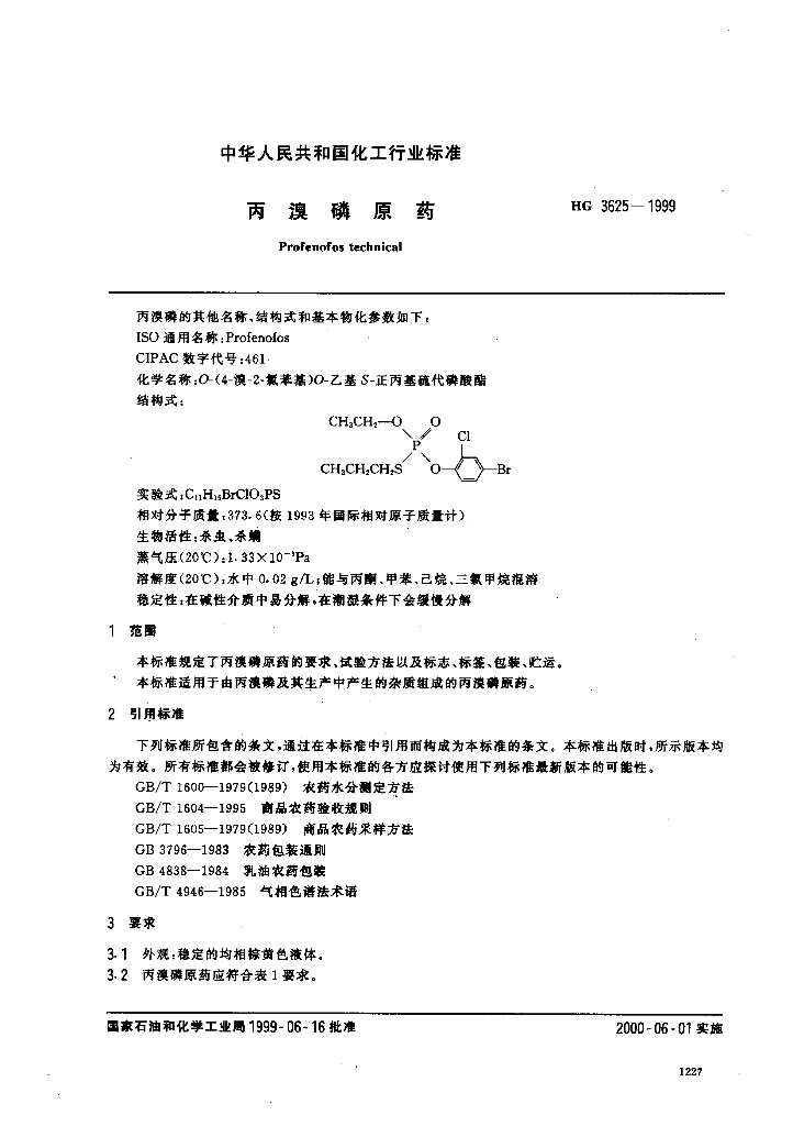 HG 3625-1999 丙溴磷原药