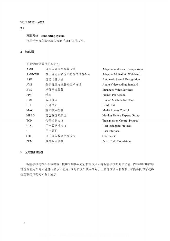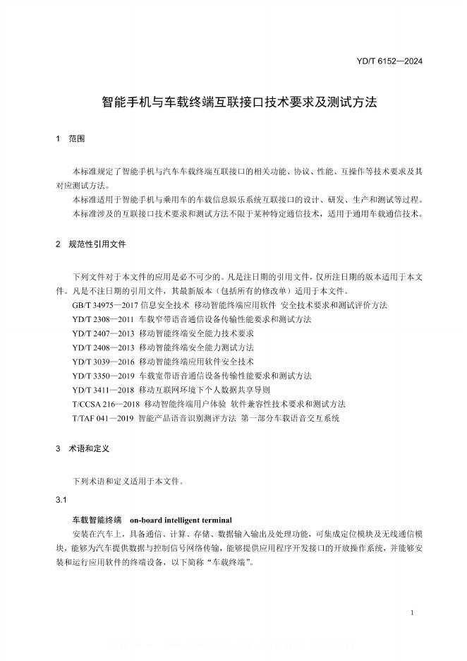 YD/T 6152-2024 智能手机与车载终端互联接口技术要求及测试方法