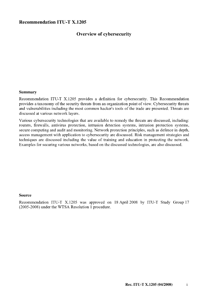 ITU-T X.1205-2008 信息安全综述