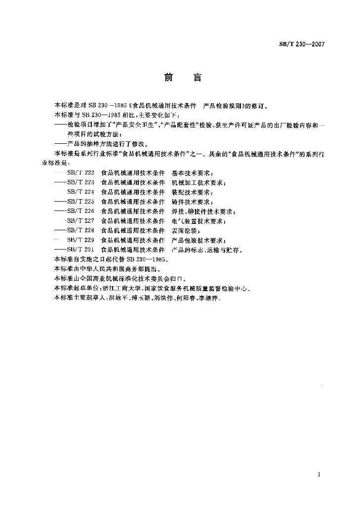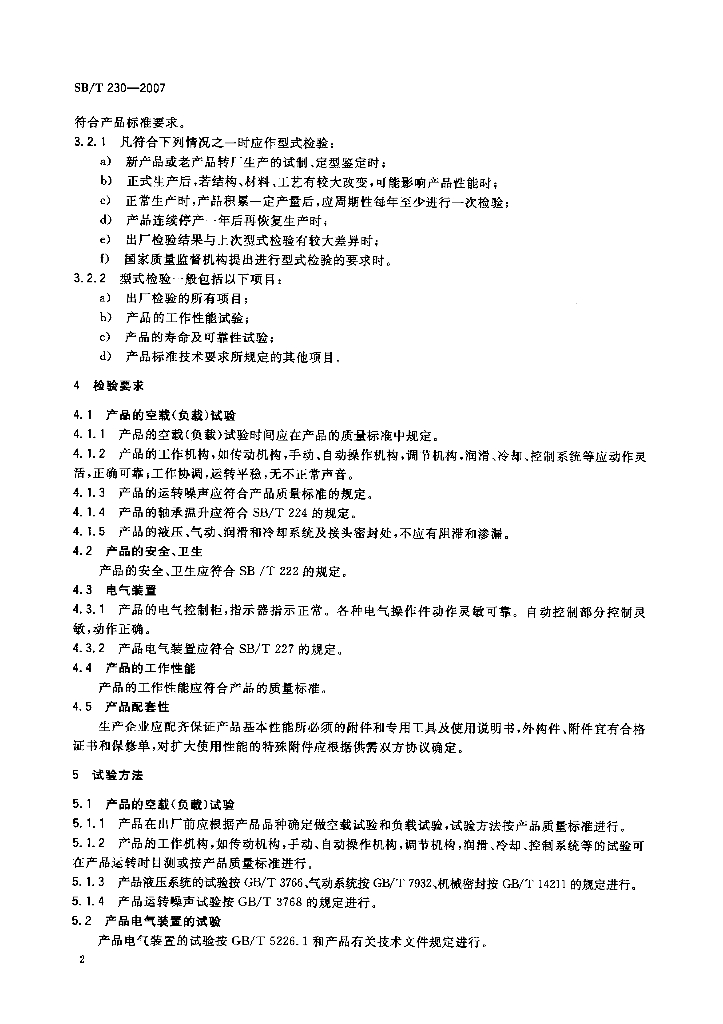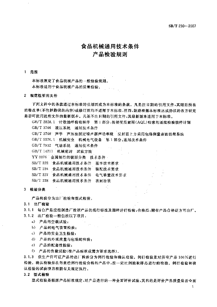 SB/T 230-2007 食品机械通用技术条件 产品检验规则