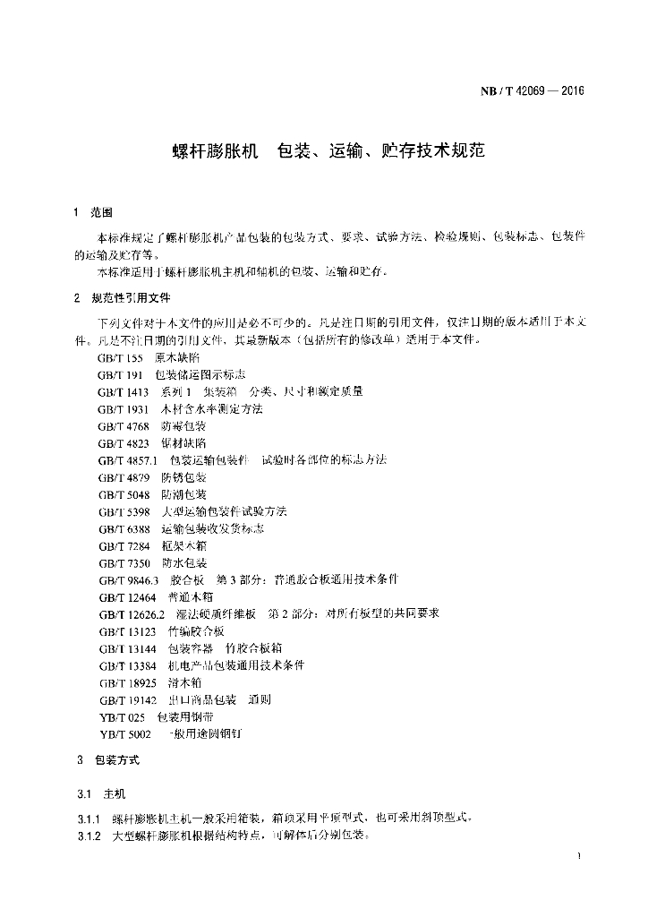 NB/T 42069-2016 螺杆膨胀机 包装、运输、贮存技术规范