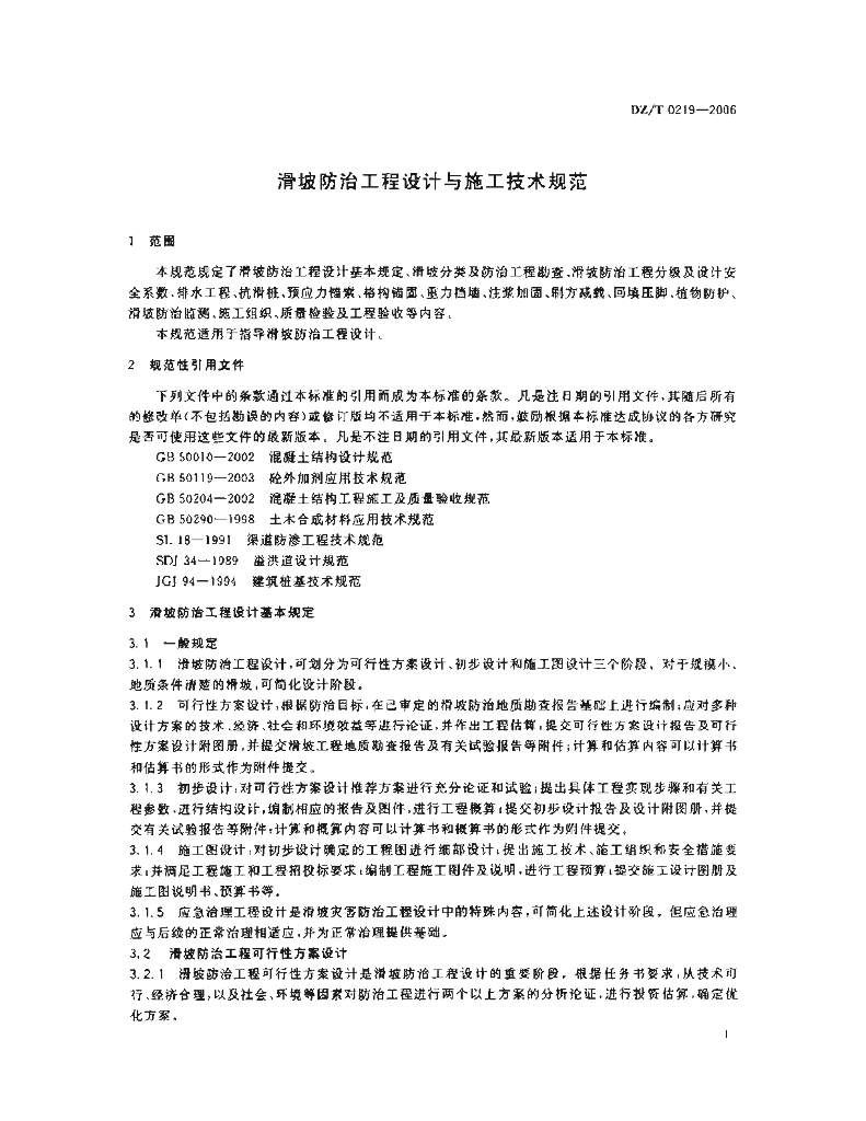 DZ/T 0219-2006 滑坡防治工程设计与施工技术规范