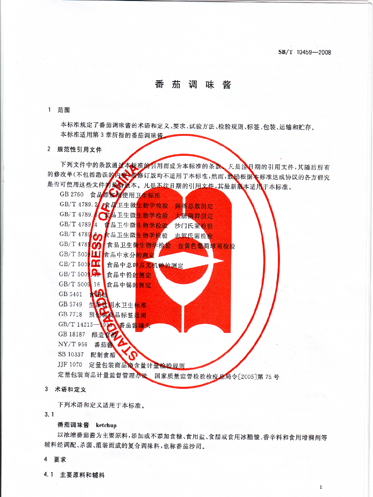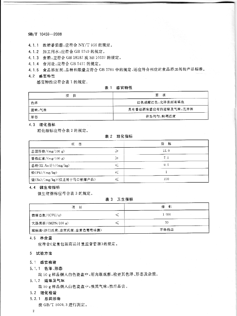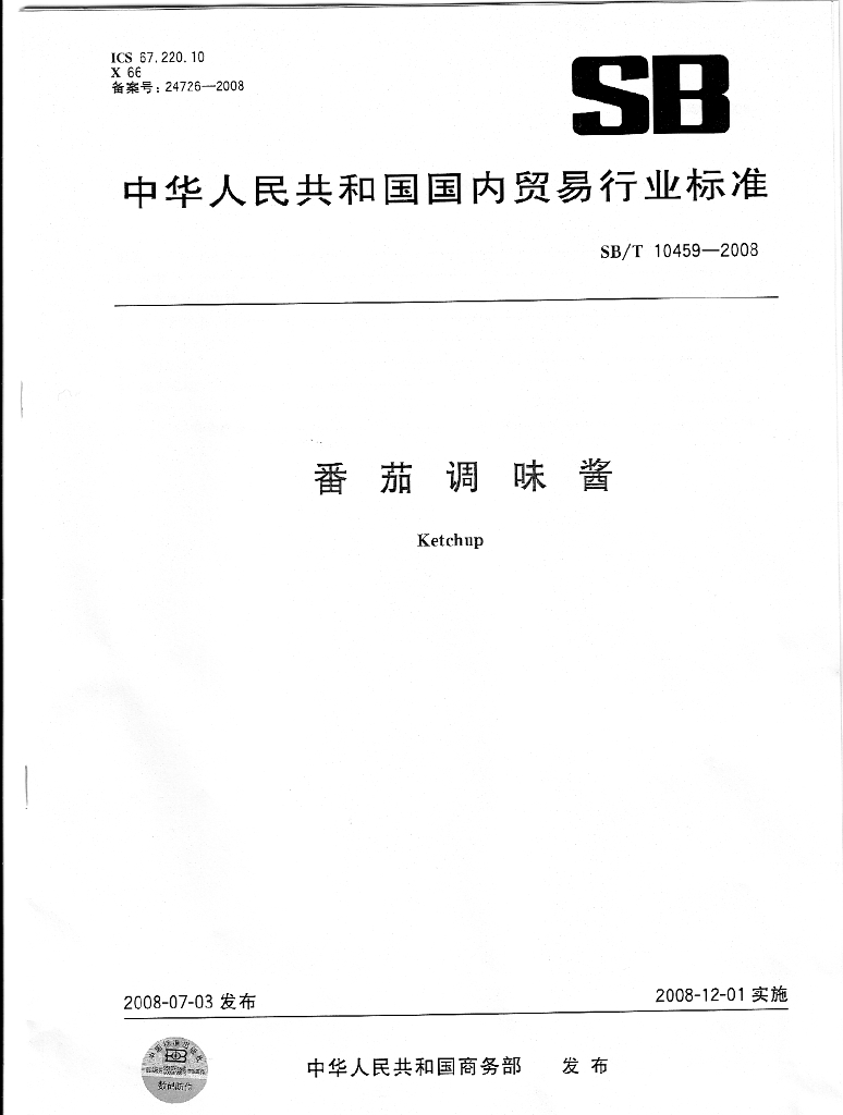 SB/T 10459-2008 番茄调味酱