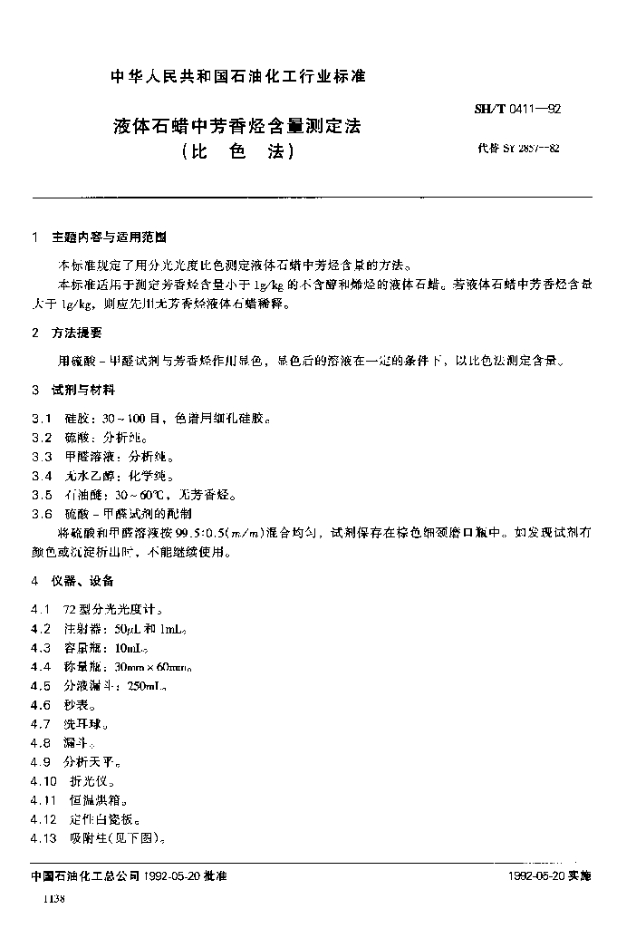 SH/T 0411-1992 液体石蜡中芳香烃含量测定法(比色法)