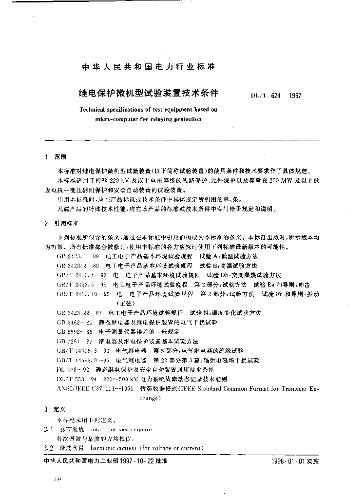 DL/T 624-1997 继电保护微机型试验装置技术条件