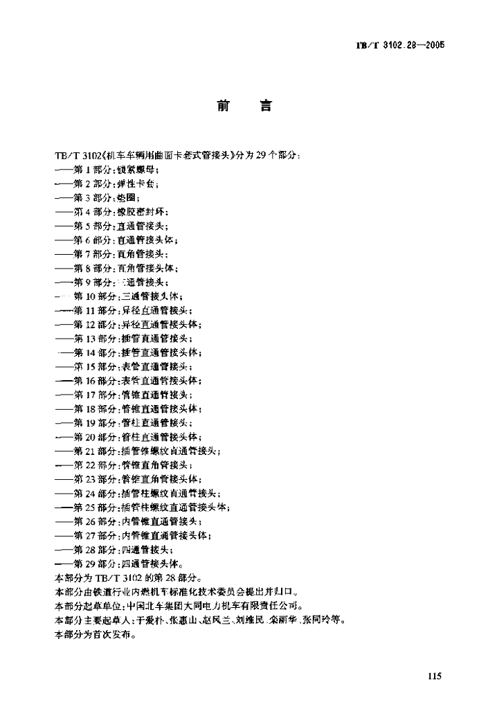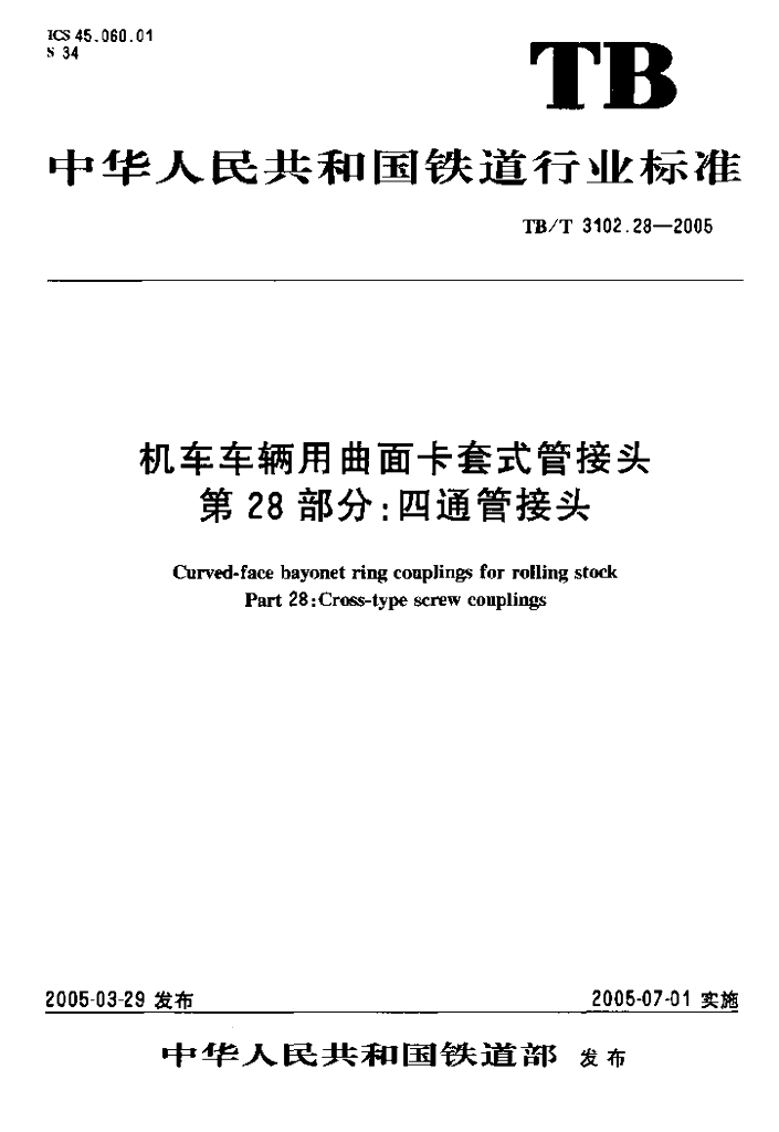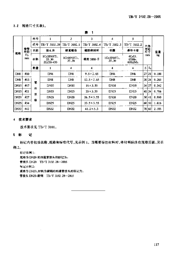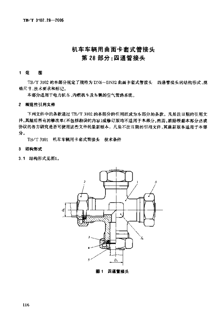 TB/T 3102.28-2005 机车车辆用曲面卡套式管接头 第28部分:四通管接头