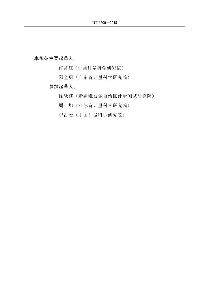 许常红(中国计量科学研究院)、阳金勇(广东省计量科学研究院)、徐秋莎(新疆维吾尔自治区计量测试研究院)、周旭(江苏省计量科学研究院)、李占宏(中国计量科学研究院)