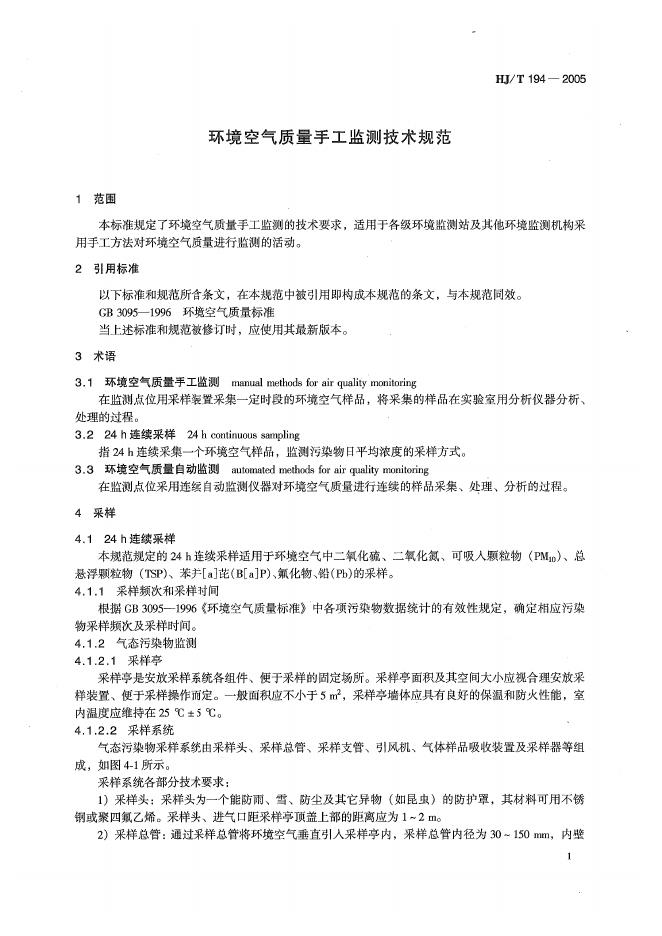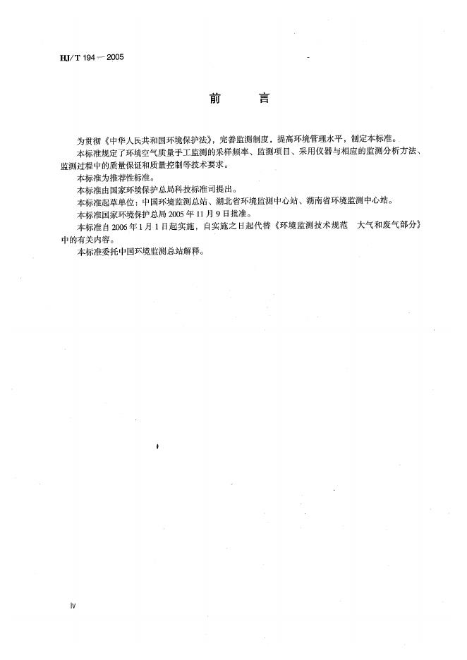 HJ/T 194-2005 环境空气质量手工监测技术规范