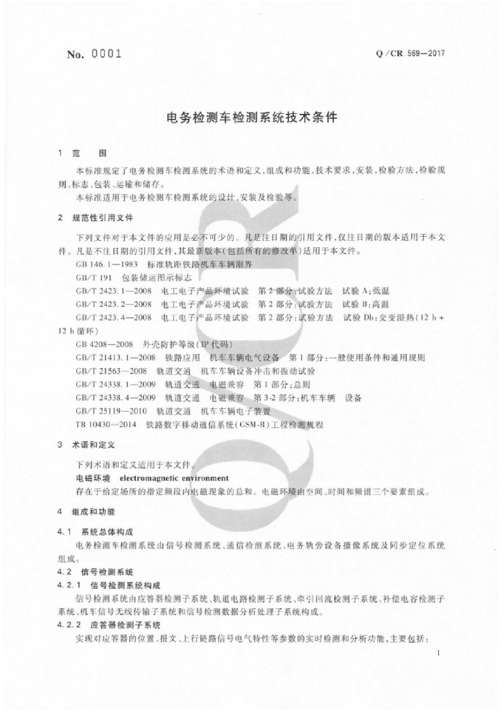 Q/CR 569-2017 电务检测车检测系统技术条件