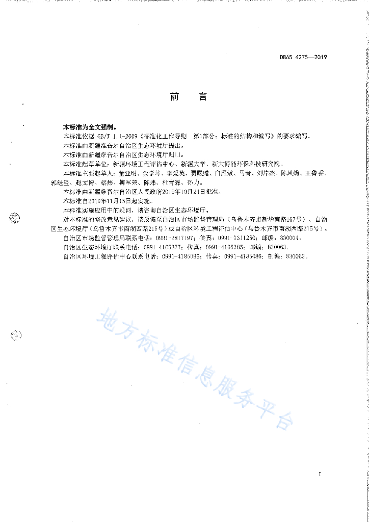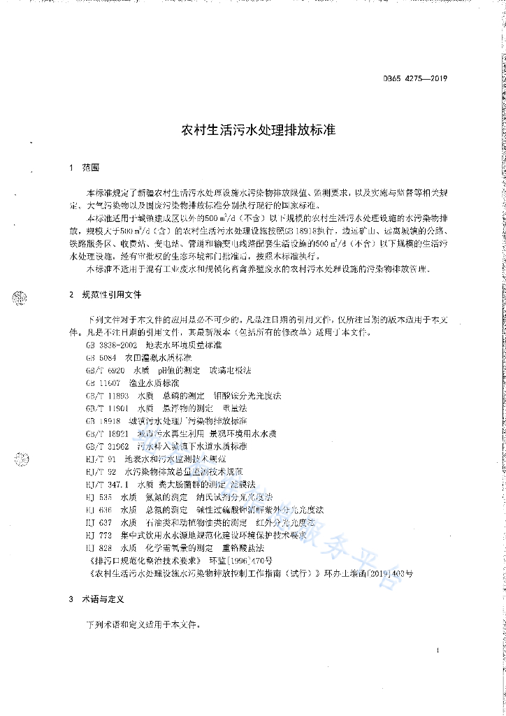 DB65 4275-2019 农村生活污水处理排放标准