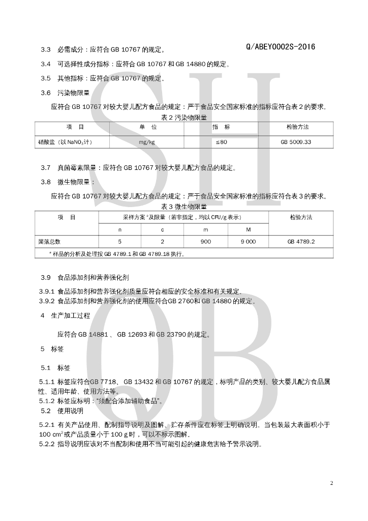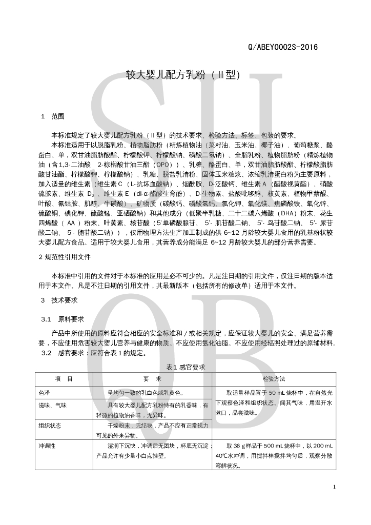 Q/ABEY 0002S-2016 较大婴儿配方乳粉(Ⅱ型)