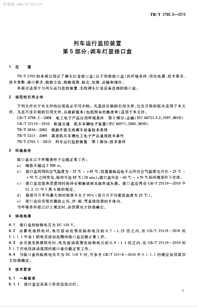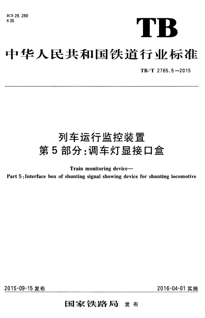 TB/T 2765.5-2015 列车运行监控装置 第5部分:调车灯显接口盒