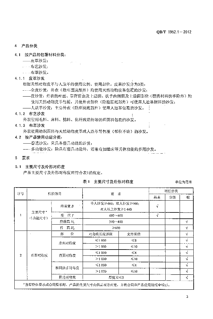 QB/T 1952.1-2012 软体家具沙发