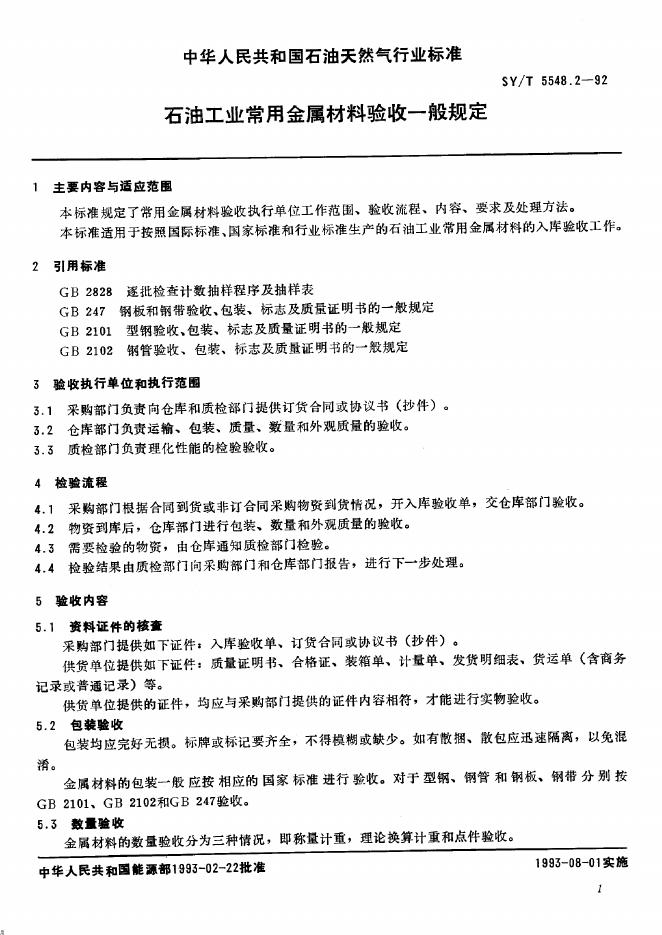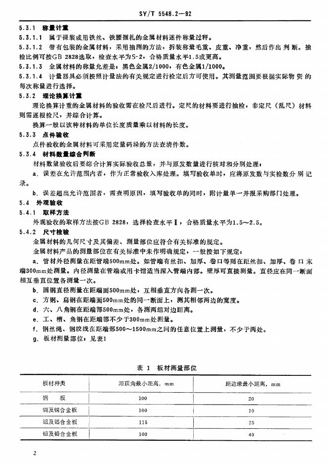SY/T 5548.2-1992 石油工业常用金属材料验收一般规定
