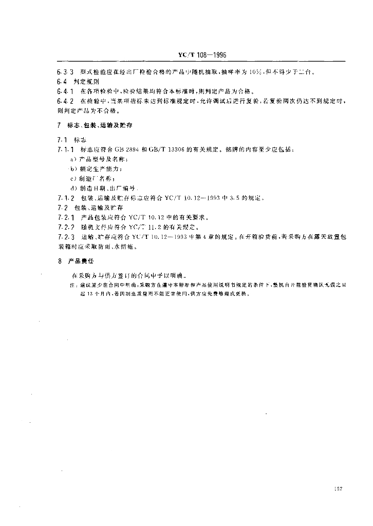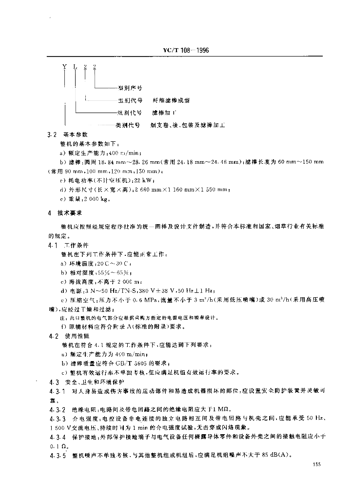 YC/T 108-1996 烟草机械 YL22型纤维滤棒成型机