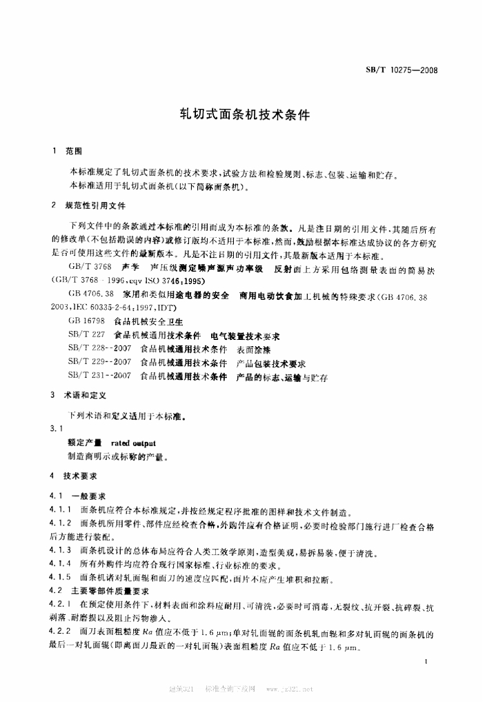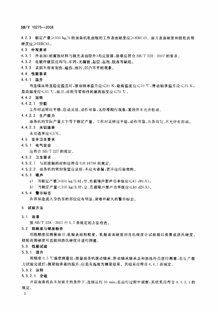 SB/T 10275-2008 轧切式面条机技术条件