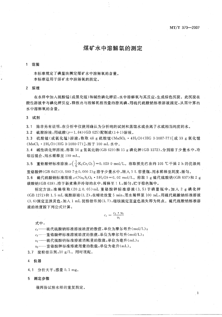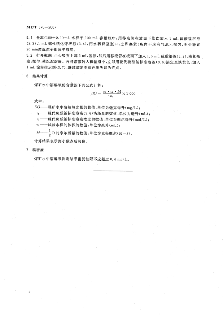 MT/T 370-2007 煤矿水中溶解氧的测定