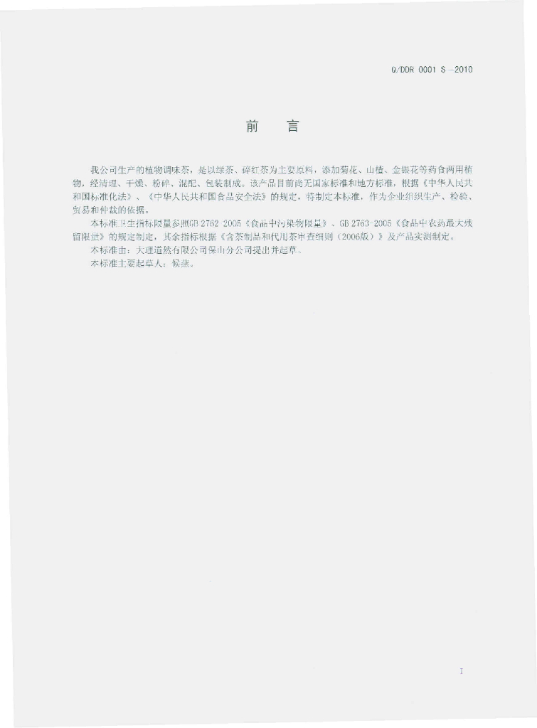 Q/DDR 0001S-2010 植物调味茶