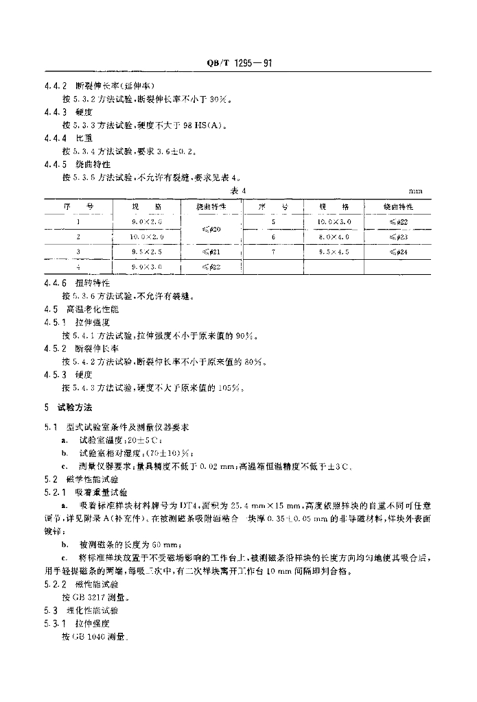 QB/T 1295-1991 家用电冰箱用门封磁条
