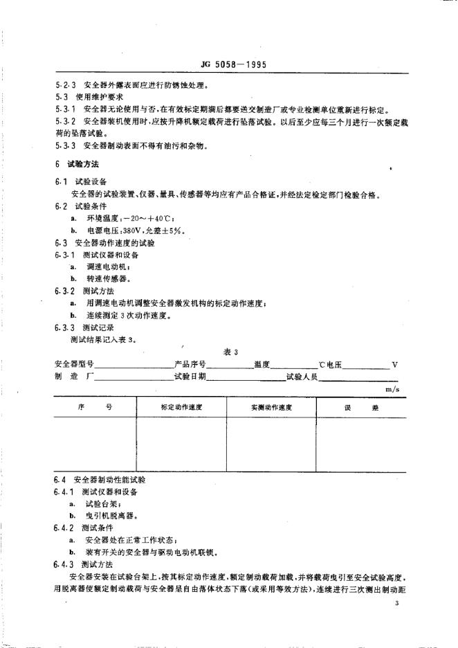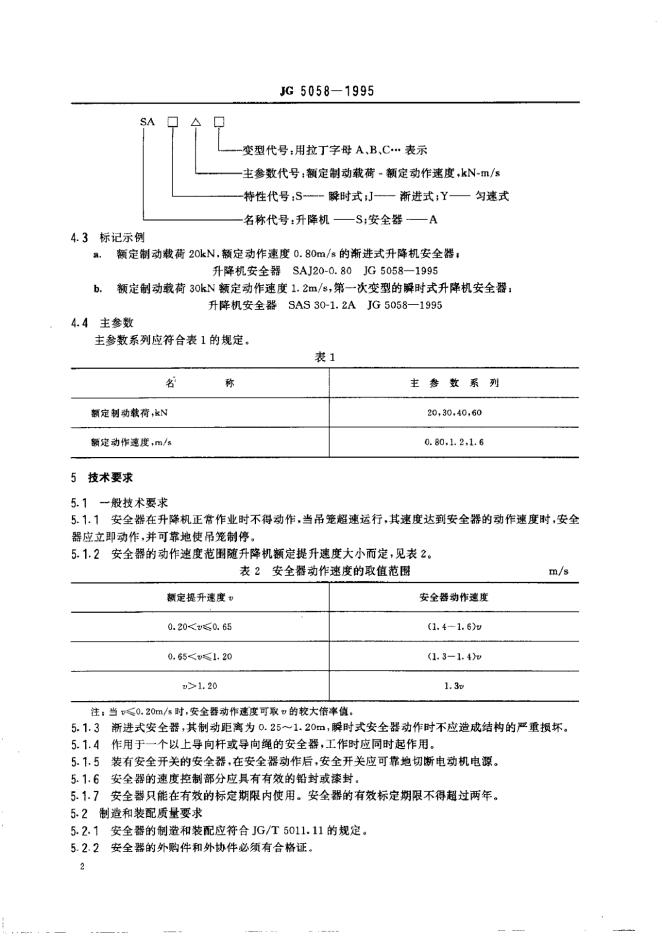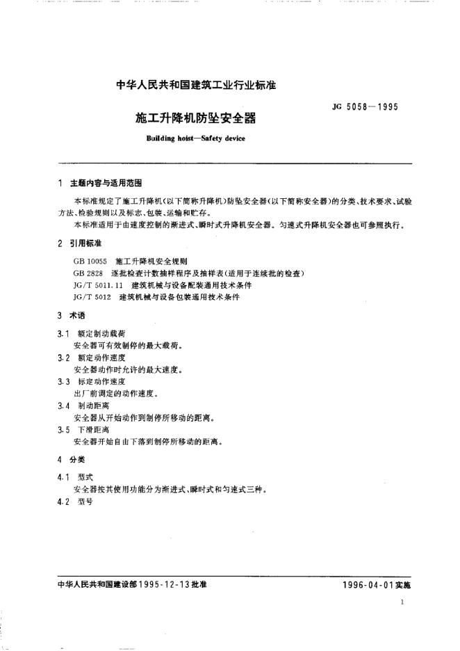 JG 5058-1995 施工升降机防坠安全器