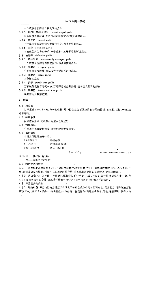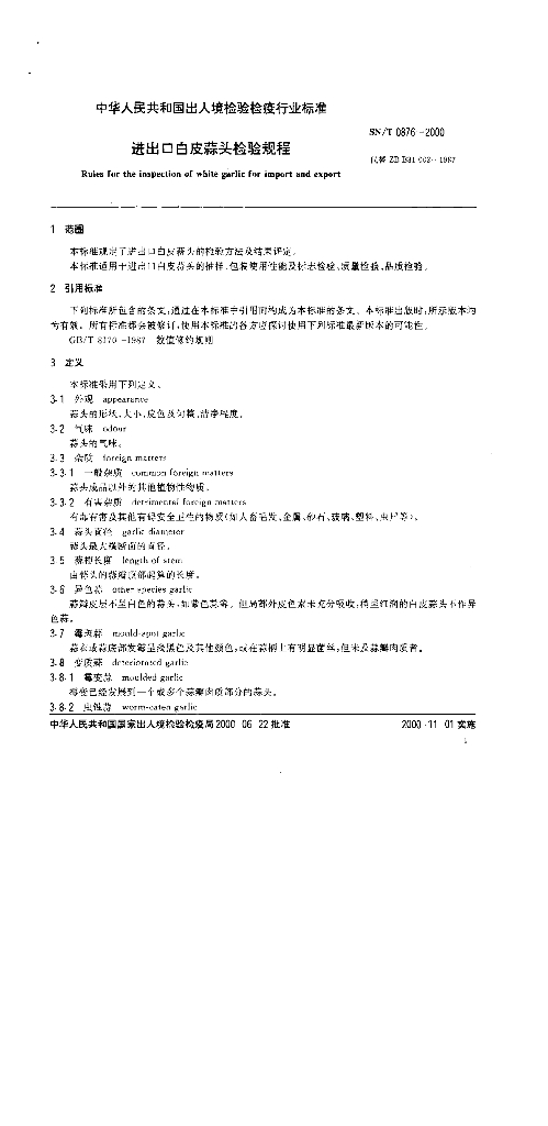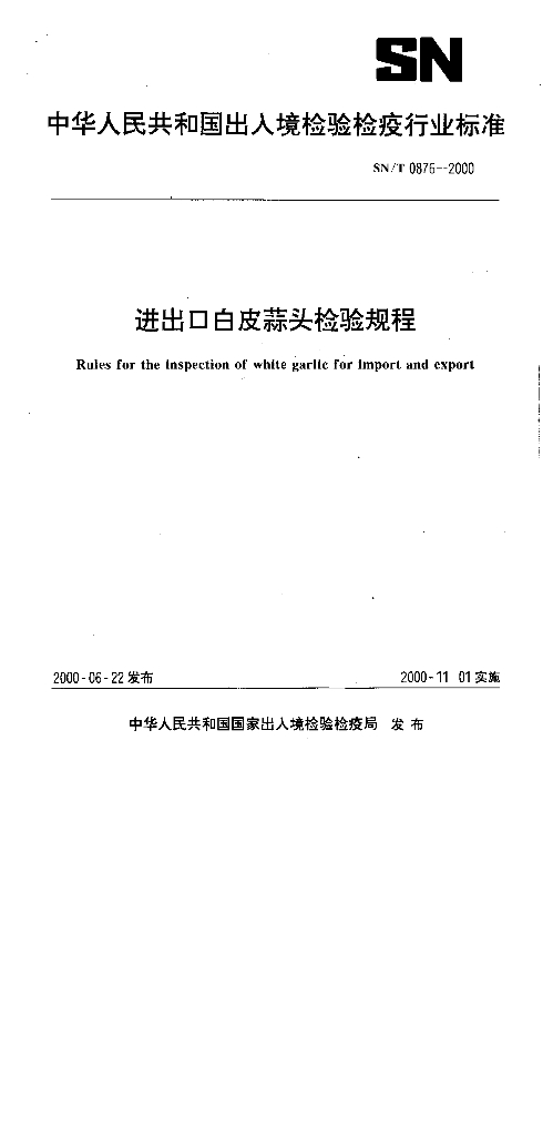 SN/T 0876-2000 进出口白皮蒜头检验规程