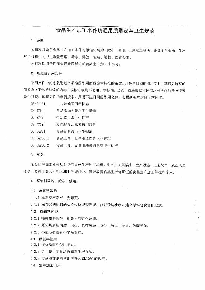 DB51/T 860-2008 食品生产加工小作坊通用质量安全卫生规范